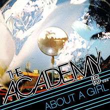 "About a Girl" is the first single by The Academy Is... from their third studio album, Fast Times at Barrington High. The single reached the pop charts at #88, making it the band's first charting single and this song was ranked #74 on MTV latinoamerica list of the Top 100 Hits of 2008. This song was number 39 on Rolling Stone's list of the 100 Best Songs of 2008.[2] The song impacted radio on August 12, 2008.[3]