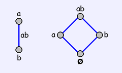 Smaller posets, and polytopes in particular, are often best visualised by using a Hasse diagram, as shown. By convention, faces of the equal rank are placed on the same vertical level. Each "line" between faces indicates a pair F, G such that F < G where F is below G in the diagram.