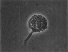 The shape of the sporangia takes on a more regular shape immediately before rupturing. The spores released are highly motile, taking on varying shapes of spherical and oval.