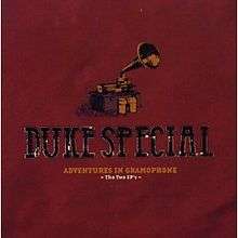 Adventures in Gramophone is an album by the Northern Ireland based artist Duke Special. It was released on Hag Records in 2005 and collects all twelve tracks from two previous EP releases - Lucky Me and My Villain Heart. It was nominated for the 2006 Choice Music Prize for Irish Album of the Year, losing out to 13 Songs by Julie Feeney.