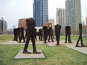 - ↑ Kevin Nance (17 November 2006). "Rows of headless giants march into Grant Park: Polish sculptor's rust-colored figures seem strangely at home in Chicago". Chicago Sun-Times. HighBeam.com. p. 58.