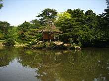 Aizu Matsudaira's Royal Garden (御薬園) is a medicinal herb garden in the city of Aizuwakamatsu, Fukushima Prefecture, Japan. The garden was first established in the 1380s. In the 1430s Ashina Morihisa, the 10th feudal lord of the Ashina clan, believing it to be a sacred place, kept the garden as a villa.[1] In 1670, Matsudaira Masatsune, the second feudal lord of the Aizu fief, cultivated various herbs in the garden. Private citizens were encouraged to grow herbs as well, so the garden became known as Oyakuen, or "medicinal herb garden".[2] Today there are about 400 kinds of medicinal herbs and trees cultivated in and around the garden. Meguro Jotei, a landscape gardener during the Edo period, designed the current layout of the garden to show nature in miniature, which is typical of a Japanese garden. The garden pond is named Shinji no Ike and is shaped like the kanji character for "heart" (心). The rectangular garden has a perimeter of about 540 m and an area of about 1.7 ha.[3]