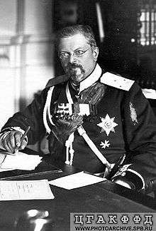 Aleksandr Fedorovich Roediger (Russian: Алекса́ндр Фёдорович Ре́дигер; 12 January 1854 [O.S. 31 December 1853], Veliky Novgorod, Novgorod Governorate, Russian Empire – 26 January 1920, Sevastopol, Crimean ASSR, Russian SFSR) was a Russian General of Infantry who fought in the Russo-Turkish War of 1877-78, served as a member of the Imperial Russian State Council, and was the Minister of War of the Russian Empire (1905–1909). He also briefly served as the Minister of War of the Principality of Bulgaria (1883).