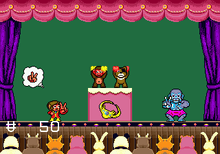 In the original Japanese version of the game, when Alex or his opponent lose a Rock Paper Scissors match, the loser's clothes disappear, leaving him/her naked with a fig leaf over his/her genitalia. In the Western versions, the loser is flattened by a heavy weight. Several levels were also renamed for the Western release.