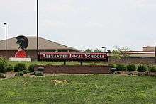 Alexander High School (AHS) is located in Albany, Athens County, Ohio, United States. It is the only high school in the Alexander Local School District. Alexander is the most well educated school in Southeast Ohio. The K-12 school complex is located just off SR 32 east of Albany. The Alexander Local School District serves students west and south of the city of Athens including residents in Albany, New Marshfield, Shade, and sections of extreme northeast Meigs County. The school's nickname is the Spartans. Their school colors are red, black, and white.