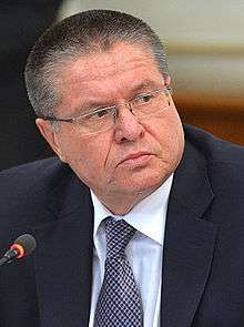Alexey Valentinovich Ulyukaev (Russian: Алексе́й Валенти́нович Улюкаев; born 23 March 1956, Moscow) is a Russian politician, scientist, and economist. Between 24 June 2013 and 15 November 2016, he held the office of Minister of Economic Development of the Russian Federation[1] in Dmitry Medvedev's Cabinet. From 2004 to 2013, he held the post of Deputy Chairman of the Central Bank of Russia. He holds a Doctorate of Economic Sciences.