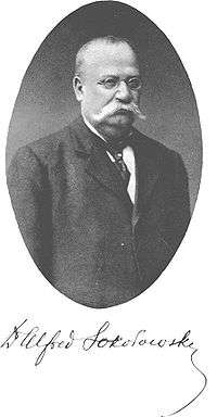 Alfred Marcin Sokołowski (born 11 November 1849 - 8 March 1924) was a Polish pulmonologist and professor of the University of Warsaw. He specialised in the field of Phthisiatry (study of tuberculosis) and he was one of the pioneers of modern treatment to diseases of the respiratory system.