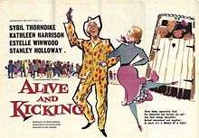 Alive and Kicking is a 1959 British comedy film directed by Cyril Frankel and starring Sybil Thorndike, Kathleen Harrison, Estelle Winwood and Stanley Holloway.[1] Its plot follows three women who grow dissatisfied with their lives in a retirement home and decide to search for fresh enjoyment and adventure. They eventually end up running a successful sweater business in Ireland.