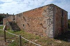 Aljub de la Font Santa ("Font Santa's Well", also known as Aljub des banyos or Aljub de Cas Donat[1]) is an historic building, housing a rainwater storage well, in the municipality of Campos, Majorca. It was built in 1671–1673, during the restoration of the adjacent Church of Saint Joan de la Font Santa, by remodelling the bathing room of a house known as Ca's Donat.[1]