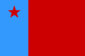 The proportion of the length and breadth of the flag are 3:2. The colour of the flag is two third on the right side red, and the remaining one third sky blue. On the top left corner of the flag in the sky blue back ground, there is a five cornered red star. The red colour in the flag stands for the revolutionary zeal of the youth an sky blue symbolises their desire for peace. Red star stands for revolutionary idealism and honesty and the five corners of the star represent the solidarity and friendship of the youth of all the five continents.