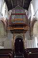 There were two periods of building in the 19th century. The first, overseen by Benjamin Ferry in 1847, saw the replacement of the galleries and pews, as well as the windows of the clerestory and the aisle,[16] termed "wretched travesties of 12th-century style".[4] Two lancet windows replaced the 15th-century window in the west wall, although the original remains.[4] Pevsner states that the north doorway comes from this rebuilding.[17] In his plan for the rebuilding, both transepts had rows of seats, the northern one being reserved for children.[2] A much great set of alterations were carried out in 1871 by George Gilbert Scott, Jr.,[2] with the majority of work being done in the chancel, where the floor was raised and oak choir stools placed, and work done on the east fenestration.[3] The outside walls of the church were also surfaced in cement stucco, which was removed post 1997 as it retained water, and a Bevington organ positioned in front of the west window.[16]