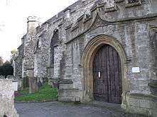 Founded by Archbishop of Canterbury William Courtenay in 1395 as part of a new College of All Saints, the church replaced an earlier one on the site dedicated to St Mary.[3] Courtenay died in 1396 and the church and college were completed by his successor, Thomas Arundel, between 1396 and 1398.[1] Richard II endowed the college with land and income from the Hospital of St Peter and St Paul in Maidstone and from the parishes of Linton, Farleigh, Sutton and Crundale. The college was also granted the advowsons for the parishes.[4] To cover the cost of building the college, Courtenay obtained a bull to levy a charge of fourpence in the pound on all ecclesiastical revenue raised in his archbishopric.[3][note 1]