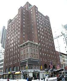 The Allerton Hotel in Chicago, Illinois, which opened in 1924, was owned and operated by the Allerton Company of New York.[7] They managed a hotel chain that grew to eight hotels.[4] This included establishments in Detroit, Michigan and Cleveland, Ohio.[8] The owners of the Allerton Hotel purchased the property formerly occupied by the De La Salle Institute in December 1923. The land was located at 106 West 59th Street through to 58th Street. Its dimensions were 53.6 by 200 feet. They also bought the adjoining Kinlock Apartments at the northwest corner of Sixth Avenue and 58th Street, 71 by 100 feet.[9] They acquired the Temple Rodeph Sholom site at the corner of Lexington Avenue and 63rd Street from Simon Brothers and Hartstein Brothers in October 1926. At the time William H. Silk was secretary of the Allerton Hotel interests. The plot measured 112 feet on Lexington Avenue and 120 feet on 63rd Street.[8]
