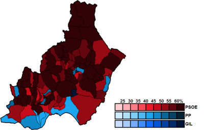 From the 1977 until 2004 Almería returned five members. This figure was increased to six members for the 2008 election.[2]