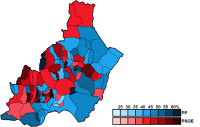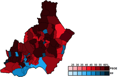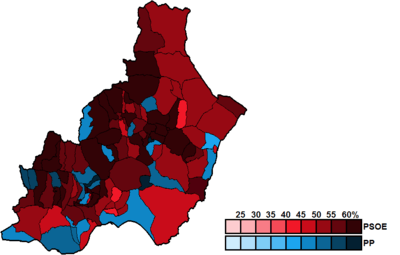 In 2004 Spain had 34,571,831 voters giving an average of 98,777 voters per deputy.[4] In Almería the ratio was below that at 85,462.[5]