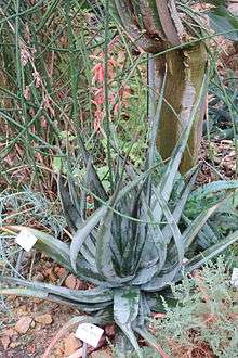Aloe affinis is a species of aloe plant, endemic to Limpopo, Gauteng, and Mpumalanga, of South Africa. It grows 200-300 mm tall excluding inflorescence, with 16-20 leaves per plant, each leaf being roughly 200 mm long x 50-100 mm wide.