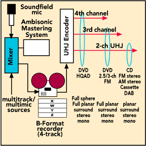 Although there are some compromises as far as accuracy of localisation is concerned in the 2-channel UHJ system, 2-channel UHJ is the format commonly used for distribution of Ambisonic recordings. 2-channel UHJ recordings can be transmitted via all normal stereo channels and any of the normal 2-channel media can be used with no alteration.