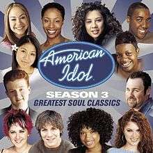 American Idol Season 3: Greatest Soul Classics is a soul music compilation that was released on April 27, 2004.[1] It contains one cover song from each of the twelve finalists of the third season of American Idol and one ensemble.