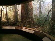 The Hall of North American Forests is a one story hall located on the museum’s ground floor in between the Theodore Roosevelt Memorial Hall and the Warburg Hall of New York State Environments. It contains ten dioramas depicting a range of forest types from across North America as well as several displays on forest conservation and tree health. Constructed under the guidance of noted botanist Henry K. Svenson (who also oversaw Warburg Hall’s creation) and opened in 1959, each diorama specifically lists both the location and exact time of year depicted.[32] Trees and plants featured in the dioramas are constructed of a combination of art supplies and actual bark and other specimens collected in the field. The entrance to the hall features a cross section from a 1,400-year-old sequoia taken from the King's River grove on the west flank of the Sierra Mountains in 1891.[33]
