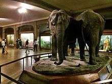 The Hall of Asian Mammals, sometimes referred to as the Vernay-Faunthorpe Hall of Asian Mammals, is a one story hall located directly to the left of the Theodore Roosevelt Rotunda. It contains 8 complete dioramas, 4 partial dioramas, and 6 habitat groups of mammals and locations from India, Nepal, Burma, and Malaysia. The hall opened in 1930 and, similar to Akeley Hall, is centered around 2 Asian elephants. At one point, a giant panda and Siberian tiger were also part of the Hall's collection, originally intended to be part of an adjoining Hall of North Asian Mammals (planned in the current location of Stout Hall of Asian Peoples). These specimens can currently be seen in the Hall of Biodiversity.[17][24]