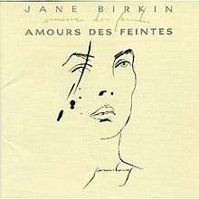 Amours des feintes is an album by Jane Birkin. The album was released in 1990 and was the last original album of songs written by Serge Gainsbourg. On the cover of the album there is a portrait of Birkin. Gainsbourg made it while he was in an emotional state of mind and that's why there are stains on the drawing because of the breaking of the pen.