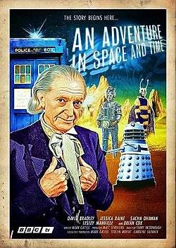 An Adventure in Space and Time is a British television drama produced to celebrate the 50th anniversary of the science fiction series Doctor Who. It tells the story of the show's creation with emphasis on the actor William Hartnell who portrayed the First Doctor. It is written by the Doctor Who and Sherlock writer Mark Gatiss. Details of the film were announced by the BBC on 9 August 2012, with the programme airing on BBC Two in the United Kingdom on 21 November 2013,[3] on BBC America in the United States and Space in Canada on 22 November 2013,[4] on UKTV in New Zealand on 22 November 2013[5] and on ABC1 in Australia on 24 November 2013.[6] The TV programme was shown in a pre-screening at the British Film Institute's Southbank centre on 12 November 2013.[7]