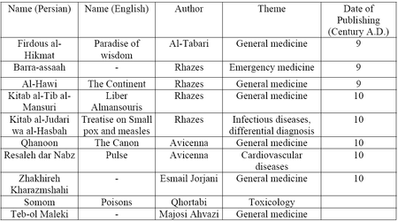 - ↑ Mohammad-Hossein Azizi. History of Ancient Medicine in Iran. Arch Iranian Med 2007; 10 (4): 552 – 555