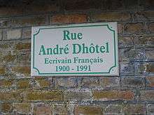 André Dhôtel (1900 in Attigny, Ardennes – 1991 in Paris) was a French writer, novelist, storyteller, and poet. He is still very well known for his book Le Pays où l'on n'arrive jamais (1955), which won the Femina Prize in 1955.