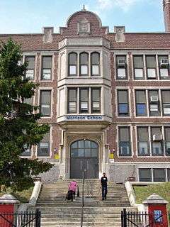 Andrew J. Morrison School is a historic school building located in the Olney neighborhood of Philadelphia, Pennsylvania. It was designed by Irwin T. Catharine and built in 1922-1924. It is a three-story, red brick building on a raised basement in a Late Gothic Revival / Tudor Revival-style. It features carved stone decorative panels and a projecting two-story stone bay.[2]