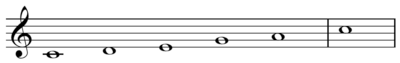 - ↑ Anon. (2001) "Ditonus", The New Grove Dictionary of Music and Musicians, second edition, edited by Stanley Sadie and John Tyrrell. London: Macmillan Publishers; Bence Szabolcsi (1943), "Five-Tone Scales and Civilization", Acta Musicologica 15, Fasc. 1/4 (January–December): pp. 24–34, citation on p. 25.