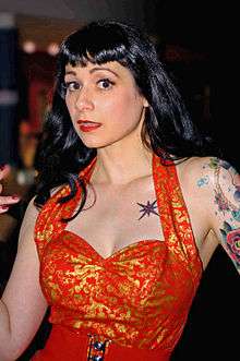 Anna Fur Laxis is an English pin-up model and burlesque dancer, particularly noteworthy for her extensive tattoos and her introduction of axe-throwing and other unusual skills into her work.[1] Her performances include residencies at Jeepers Peepers Burlesque (York, UK) and Wet Spot (Leeds, UK), and have been acclaimed around the world. She also makes frequent appearances in print both as a model and as a celebrity, having appeared many times in 21st Century Pin-Ups magazine, Skin Deep magazine and Bizarre magazine.