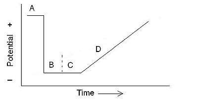 Anodic stripping voltammetry usually incorporates 4 steps if the working electrode is a mercury film or mercury drop electrode and the solution incorporates stirring. The solution is stirred during the first two steps at a repeatable rate. The first step is a cleaning step; in the cleaning step, the potential is held at a more oxidizing potential than the analyte of interest for a period of time in order to fully remove it from the electrode. In the second step, the potential is held at a lower potential, low enough to reduce the analyte and deposit it on the electrode. After the second step, the stirring is stopped, and the electrode is kept at the lower potential. The purpose of this third step is to allow the deposited material to distribute more evenly in the mercury. If a solid inert electrode is used, this step is unnecessary. The last step involves raising the working electrode to a higher potential (anodic), and stripping (oxidizing) the analyte. As the analyte is oxidized, it gives off electrons which are measured as a current.