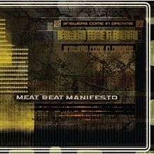 Answers Come in Dreams is an album by Meat Beat Manifesto.[6] It consists of lengthy ambient, glitch, and dubstep-focused pieces, with an attention to texture rather than the raw sampling and breakbeat rhythms seen on many of the group's previous releases.