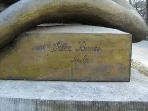 - ↑ Bouré signed himself as Ant. Félix Bouré on at least two of his works, L'enfant au lézard and the pair of lions known as Totor et Tutur. The critic Camille Lemonnier, who knew him personally through the Société Libre des Beaux-Arts, calls him "Félix Bouré."