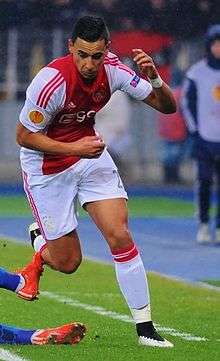 El Ghazi was signed by AFC Ajax in July 2013.[2] During the 2014–15 pre-season, El Ghazi scored eight goals in 150 minutes. The top scorer of the preparation period was intended to play for the reserves team Jong Ajax, but due to his performance was listed for the first team of Ajax following the loan of winger Lesley de Sa to Go Ahead Eagles. He made his official debut for Ajax in the 2014 Johan Cruijff Schaal against PEC Zwolle, coming on for Ricardo Kishna in the 1–0 loss at home[3] He made his regular season debut for Ajax in the 2014–15 season opener against Vitesse. The match ended in a 4–1 home victory, with El Ghazi providing the assist for the fourth goal by Lasse Schöne in the 87th minute.[4] On 17 August 2014 he scored his first Eredivisie goal against AZ in the 90th minute of the 3–1 win in Alkmaar.[5] He scored his first goal in the UEFA Champions League on 22 October 2014 at Camp Nou, in the 88th minute of the 3–1 loss to FC Barcelona. He was the first player to score at Camp Nou since the beginning of the 2014–15 season, when Barcelona went five matches at home without conceding a goal.[6]