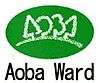 The emblem of Aoba Ward was officially announced on November 6, 1996 to commemorate the birth of Aoba Ward. The emblem was chosen from a number of designs submitted by residents. The trees and different shapes inside the green oval spell "AOBA." The hill symbolizes the geographic location of Aoba Ward. This emblem signifies the warmth that the nature gives to human beings.