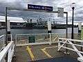 Ramp leading towards the wharf. Passengers getting off at Aquarium have a right-of-way, as signalled by the "No entry" sign and arrows on the ramp itself.