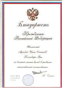 For the achieved results in professional activities A. I. Ostashev awarded: