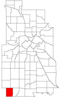 Armatage is a neighborhood in the Southwest community in Minneapolis. Located in the southwest corner of the city, the neighborhood is bounded on the north by 54th Street West, on the east by Logan Avenue South, on the south by Highway 62, and on the west by the city limits at Xerxes Avenue South. The neighborhood grew around the school named for Maude Armatage, a distinguished community leader. Armatage is built up with mostly single-family housing and some multifamily buildings. The neighborhood also has a park with a community center.[3]