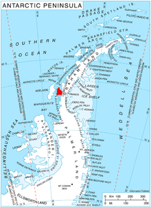 Location of Arrowsmith Peninsula on Graham Coast, Antarctic Peninsula.
