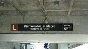 Arví is the second and last station on line L of the Medellín Metro. It is located in the Santa Elena village of Medellín.[1] It was inaugurated in early 2010, along with Arví park, which caters to tourists. It uses the same metrocable system as lines J and K.