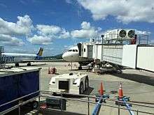 Asheville Regional Airport (IATA: AVL, ICAO: KAVL, FAA LID: AVL) is a Class C airport near Interstate 26 near the town of Fletcher, 9 miles (14 km) south of Asheville, in the U.S. state of North Carolina. It is owned by the City of Asheville.[1] In 2015 it served an all-time record number of passengers for the airport, 787,037, an increase of 4% over 2014.[2]