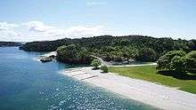 Ask is a village in the eastern part of Askøy. Due to its pleasant climate and its convenient location to Bergen, Ask was the location of a kongsgård (lit. "royal farm"); the very old Ask Church and churchyard was also located in Ask. The location where the church was situated from about 1200 until 1741 is today marked by a stone cross. Ask is the saga location for a famous dispute over inheritance between Egill Skallagrímsson and Berg-Önundr.