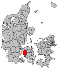 Assens Municipality is a municipality (Danish, kommune) in Region of Southern Denmark on the west coast of the island of Funen in central Denmark. The municipality covers an area of 513 km² and a total population of 41,443 (2012). Its mayor from 1 January 2014 is Søren Steen Andersen, a member of the agrarian liberal Venstre political party.