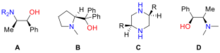 The first example of catalytic asymmetric addition of alkynylzinc compounds to aldehydes was reported by Kenso Soai and co-workers in 1990.[3] In their experiments, chiral amino alcohols and amines (A to C in Figure "Examples of ligands used in asymmetric addition of alkynylzinc compounds to aldehydes") were used as ligands, and the alkynylzinc reagent was prepared from reaction of alkyne with diethylzinc. Although the yields were high, but the highest enantiomeric excess achieved was only 34% with 5 mol% ligand loading. Erick Carreira and co-workers reported high enantiomeric excess using a chiral amino alcohol, N-methylephedrine (D).[4] Stoichiometric amount of D was used in their reactions, and up to 99% of enantiomeric excess was achieved at room temperature for a broad range of aldehydes. In Carreira’s experiments, the alkynylzinc reagent was generated from the reaction of alkyne with Zn(OTf)2 in the presence of an amine base.