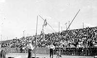 ![]() LeRoy Samse clearing the bar on the way to the silver medal. |