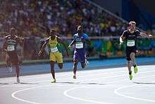 - ↑ "Usain Bolt wins third straight 100m Olympic final – as it happened". Guardian. 15 August 2016. Retrieved 16 August 2016.
