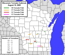 - ↑ "Record Tornado Outbreak August 18, 2005". NWS Milwaukee. NOAA. February 10, 2010. Retrieved January 17, 2014.