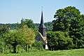 [8] The church was decommissioned when Saint-Aubin-sur-Auquainville was incorporated into the commune of Auquainville in 1831 and was then used as a burial chapel by the Custine family. The choir with a flat apse indicates the building is from the late Middle Ages. It has a single nave and tower sitting on the western gable. The windows and door have without doubt been re-engineered in the 18th century. Inside, the building has retained all of its former layout. The Church contains many items that are registered as historical objects: