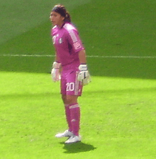 Aurora Cecilia Santiago Cisneros (born 19 October 1994), commonly known as Cecilia Santiago, is a Mexican international footballer who plays as a goalkeeper for the Mexico women's national team. By playing in the 2011 FIFA Women's World Cup in Germany at the age of 16 years and 251 days,[4] she became the youngest-ever goalkeeper to appear in a World Cup.[5] She currently plays for Þór Akureyri.[6]